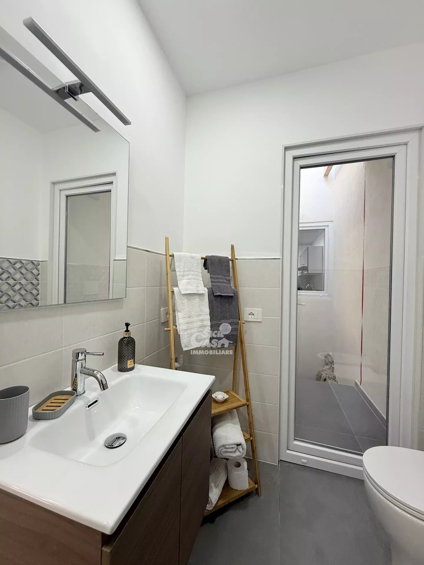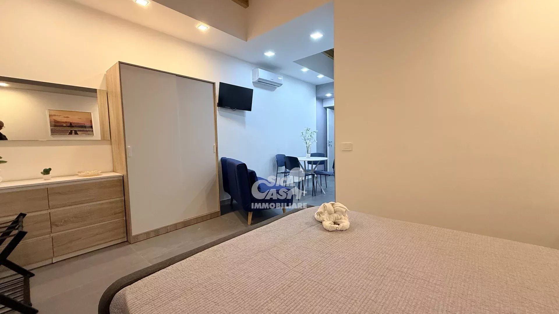 Un ulteriore valore aggiunto è l'area libera soprastante, che include un terrazzo privato, perfetto per momenti di relax all'aperto. L’appartamento è dotato di tutti i comfort moderni: climatizzatori, cucina attrezzata con elettrodomestici di ultima generazione, microonde, TV e un impianto di videosorveglianza nelle parti comuni garantiscono sicurezza e comodità.